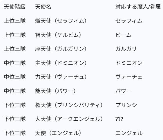 5.2 天使階級と魔人/眷属の対応表