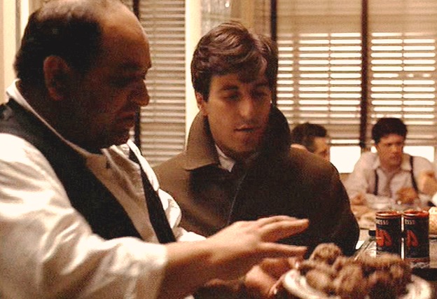 マフィアの幹部であるクレメンザが、アジトで部下たちに料理を教えるシーンは、この硬派なギャング映画における究極の飯テロシーンです。
