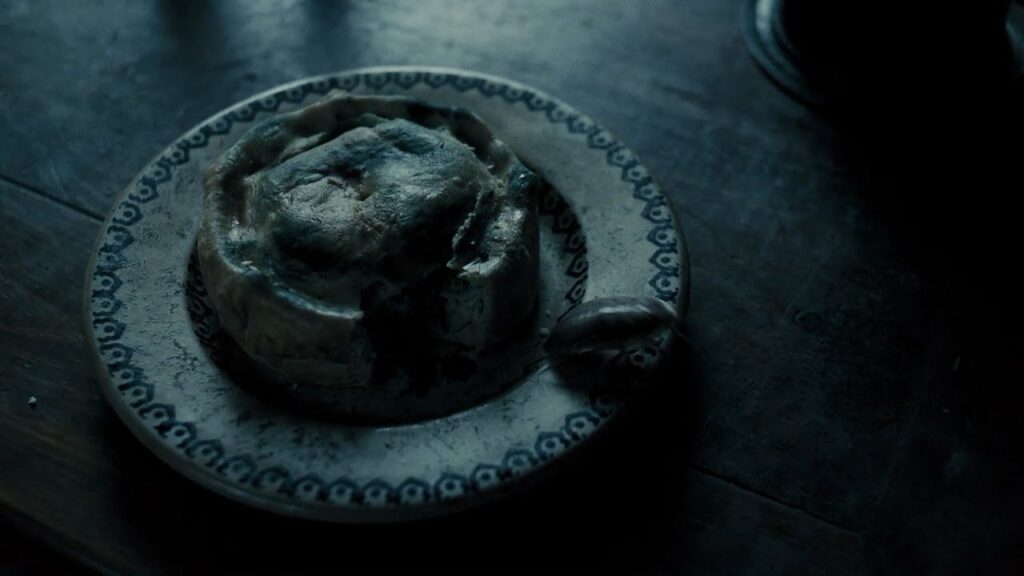 パイは、焼き色のついたパイ生地から肉汁が滴り、見ているだけで唾液が出そうなほど、非常に美味しそうに描かれています。この「最高に美味しそうな見た目」と「最も忌避すべき原材料」との強烈なコントラストこそが、本作の魅力です。背徳的な秘密を知っている観客は、そのパイが飛ぶように売れる光景を見て、「こんなに美味しいなら、もし知らなければ食べてしまうかもしれない」という、恐ろしい共感を覚えてしまうのです。ホラーとグルメの融合が生んだ、究極の「キモうま」と言えるでしょう。