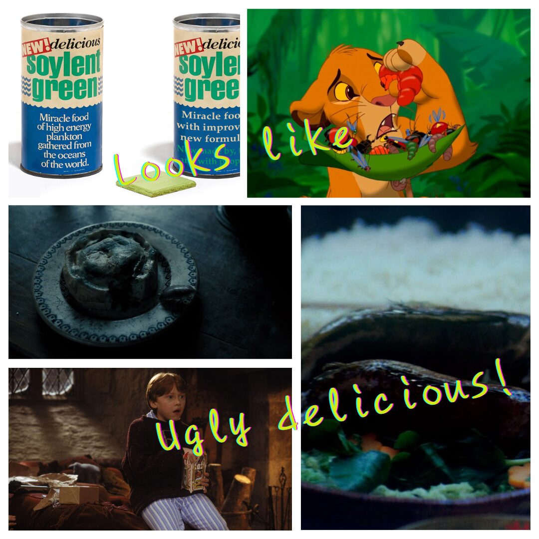 ディズニークラシックの名作ですが、主人公のシンバがティモンとプンバァに出会い、彼らのモットー「ハクナ・マタタ」の生活に染まる際、伝統的な肉食から一転して食生活を改めます。彼らが食するものが、緑色や黄色に輝く昆虫や幼虫です。
