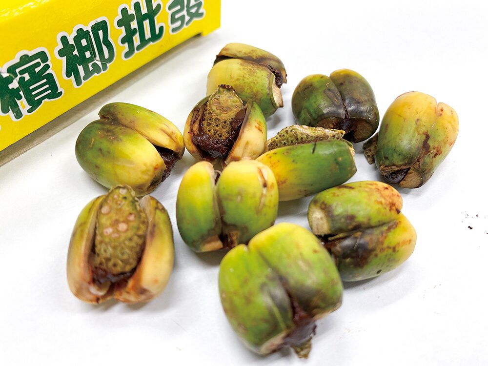 ビンロウはヤシ科の植物の実で、噛むと覚醒作用をもたらす嗜好品です。