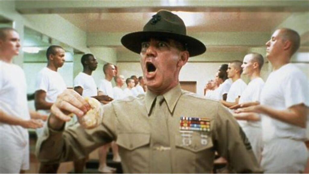 そして彼を追い込むハートマン軍曹。下品で過激な罵声の数々。字幕でもめちゃくちゃです。今だったらこんな表現できないんじゃないかと思います。でも、兵士を育てる訓練の中では今なお行われているのではないか。そんなリアリティもまたあります。とにかく凄いキャラクターです。