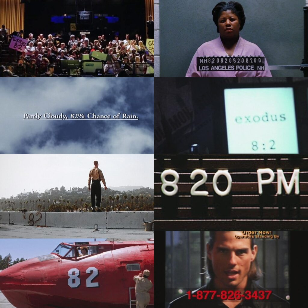 映画のクライマックスに向かうにつれて、画面上に「82」という数字や「EXODUS(出エジプト記)」**という単語が繰り返し登場します。これは、旧約聖書の記述を暗示しています。
