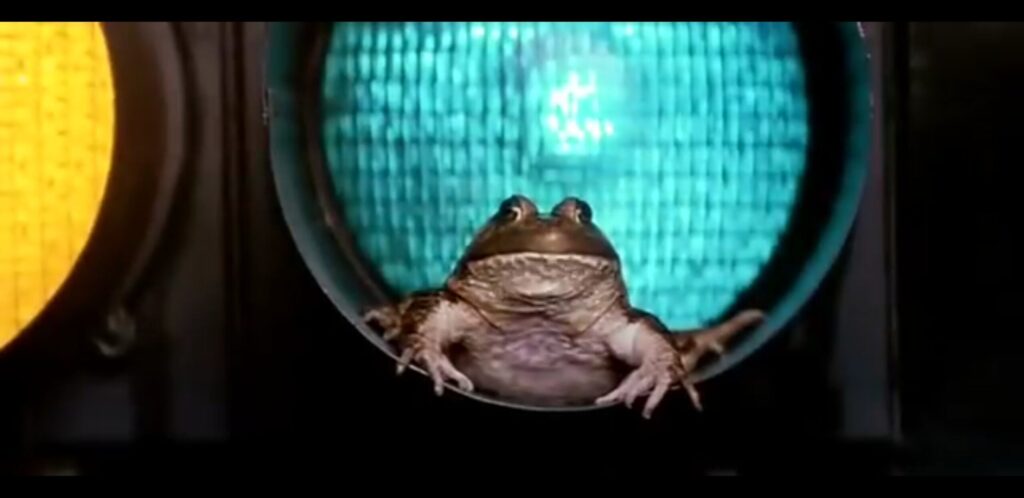 - 広範囲のシーン: 空から大量のカエルが降る遠景や、道路を埋め尽くすカットは、模型を仕込んだ装置を高い位置に設置し、ワイヤーやレールを使って大量に滑り落とすか、上から撒き散らすことで撮影されました。