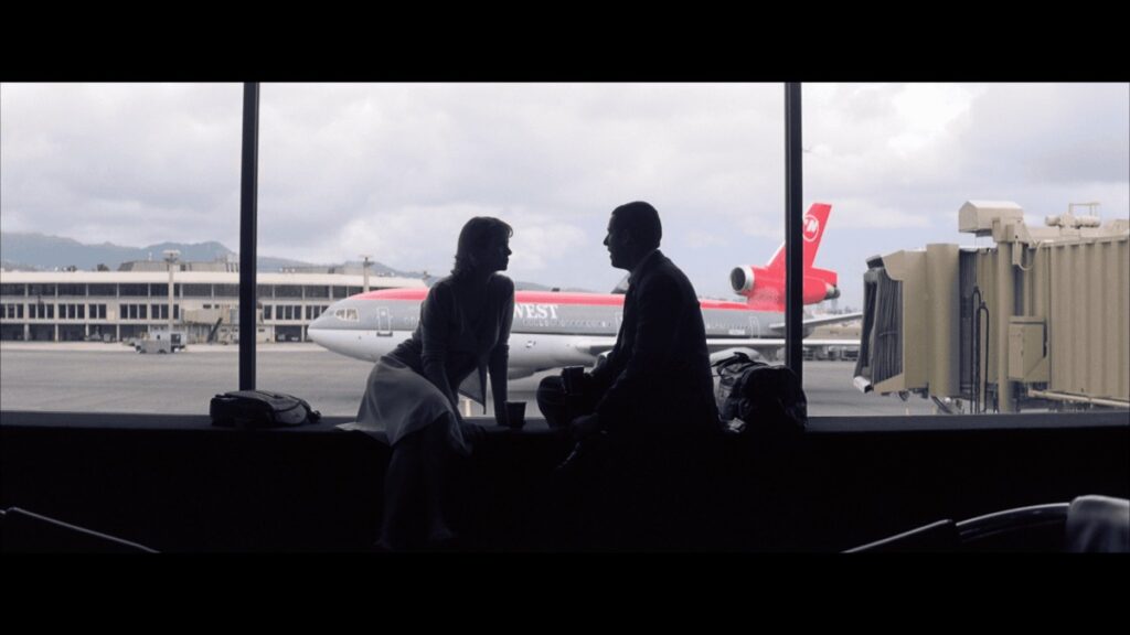 特に印象的なのが、ホテルのロビーでの再会とキスのシーンです。二人の姿を遠目からのシルエットで捉えることで、顔の表情を映さずとも、その愛が個人の感情を超えた普遍的で詩的なものであることを表現しています。これは、PTA監督の非凡なセンスが光る、最もロマンチックな「額縁ショット」と言えるでしょう。