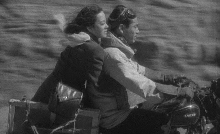 あらすじ:人気画家・青江(三船敏郎)は、オートバイ旅行中に偶然出会った歌手・美也子(山口淑子)を、同じ宿泊先だと知りバイクの後ろに乗せて宿へと向かいます。