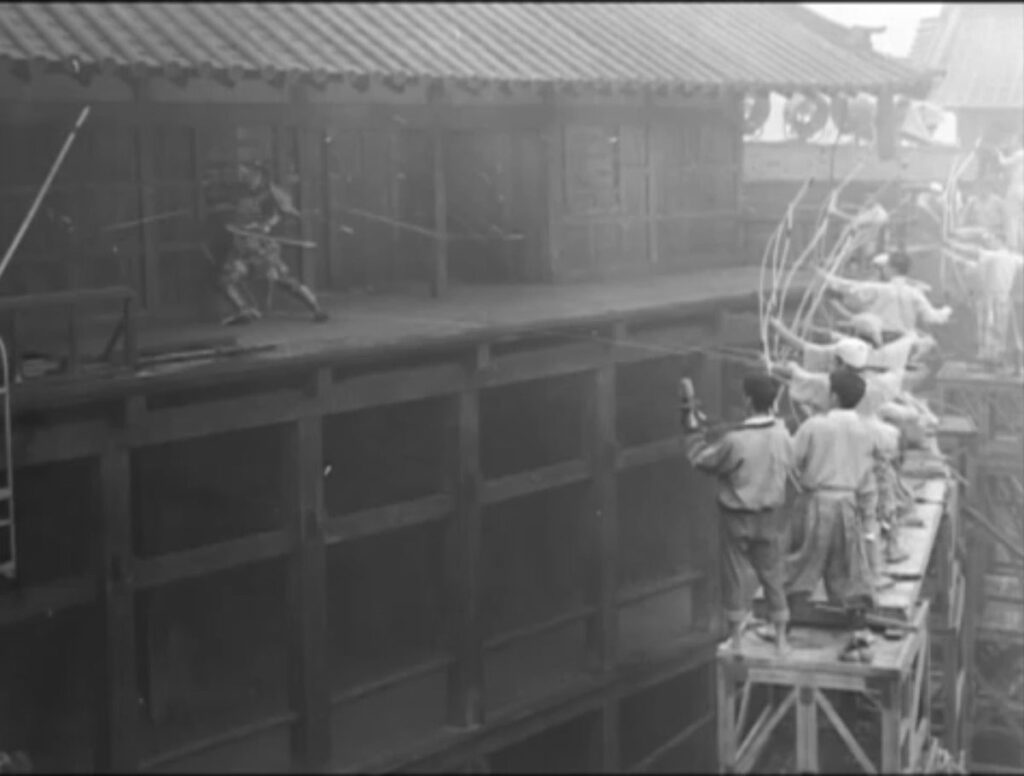 そして、クライマックス。原作の「言葉のトリック」によるどんでん返しを排し、武時が迎える結末は、より現実的で苛烈な因果応報として描かれます。武時を射る矢のシーンでは、大学の弓道部の協力を得て、三船に「自由に動いて」という指示のもと、本物の矢が射込まれたという逸話があり、その圧倒的な緊迫感とリアリティは、映画史に残る名場面です。最後の矢が首を貫くシーンの鮮烈かつ自然な繋ぎ方は、見事な編集技術によって、観客に強烈な衝撃を与えます。